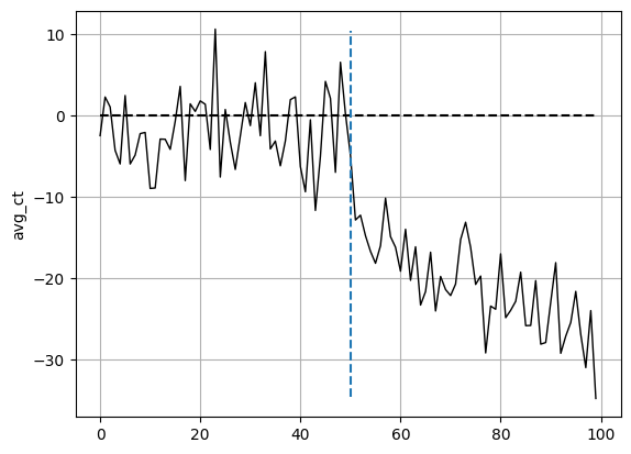 From Figure 4.1, we see that SEA and SF follow similar trends up till time of intervention. When the scanner guns are implemented, there is a sharp decrease in average check-out time with a continual downward trend. This is a great indication that our program provided significant decrease to CT. To get a numerical value from this graph, we can extract it manually by performing the above calculations using the data or by fitting a OLS model (they both provide the same result. Below we provide both results.